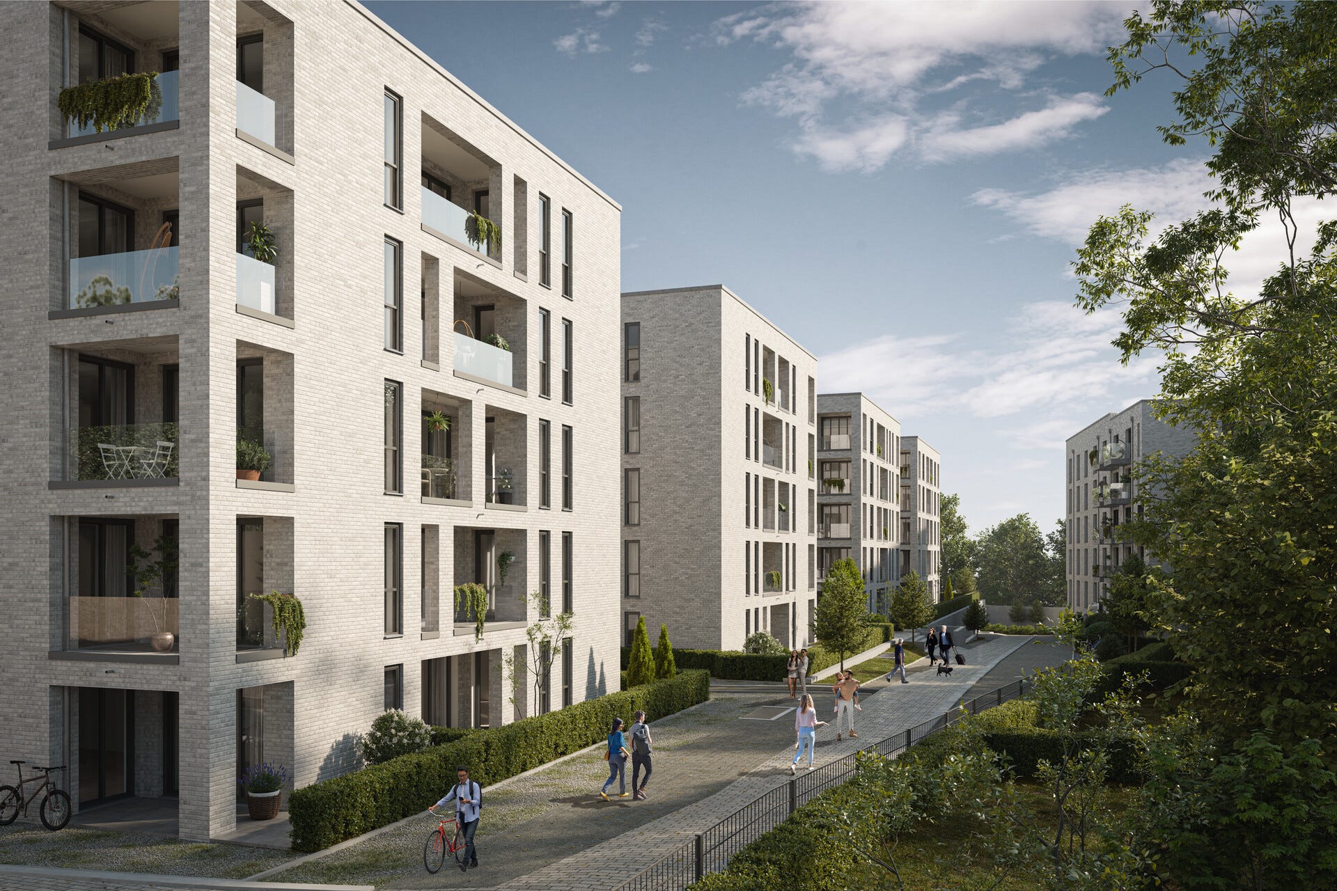 Mittwoch, 25. März 2026Die Bauarbeiten an den Häusern 1 und 2 verlaufen planmäßig. Auf unserer Baustelle an der Roermonder Straße sind die nächsten Fortschritte gut zu erkennen. Im Vordergrund sind die Häuser 1 und 2 zu sehen: Hier werden die Kellerwände weiter gestellt. Parallel laufen die Arbeiten an Schalung und Bewehrung, damit die Filigrandeckenelemente Mitte April aufgelegt werden können. Auch bei den Häusern 3 u