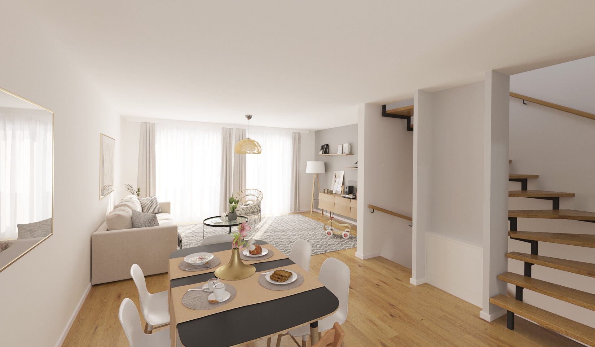 Vom Wohnbereich mit Terrasse und Garten bis zum Studio mit Dachterrasse – diese energieeffiziente Doppelhaushälfte bietet Raum zum Entfalten und Wohlfühlen.