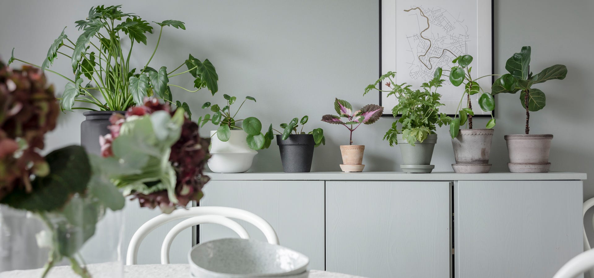 Weiße oder graue Räume wirken durch Pflanzen frischer und gewinnen an Herzlichkeit, weshalb wir in diesem Jahr gerne unseren grünen Daumen zeigen können.