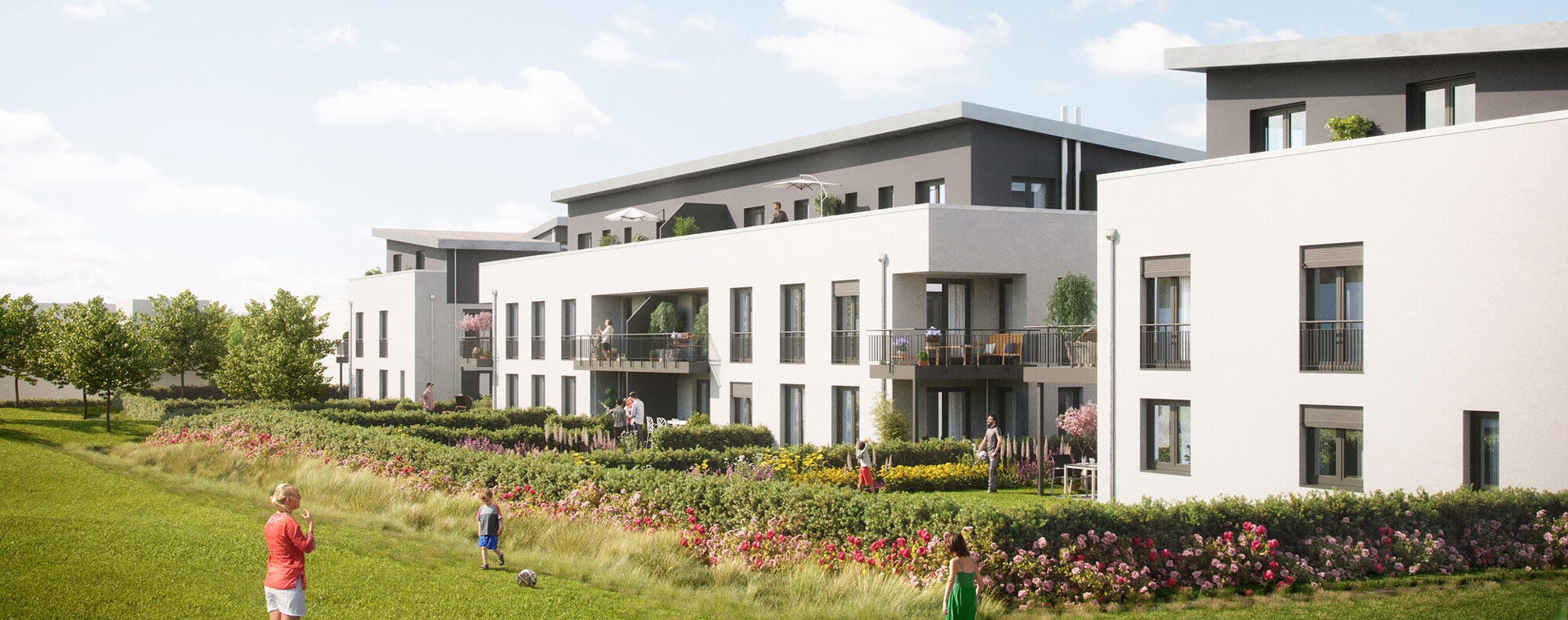 Die neuen Wohungen bieten zwei, drei oder vier Zimmer, 54 bis 103 Quadratmeter Wohnfläche und jeweils einen Balkon oder eine großzügige (Dach)-Terrasse. Die Wohnungen im Erdgeschoss erhalten zudem einen eigenen Gartenanteil.