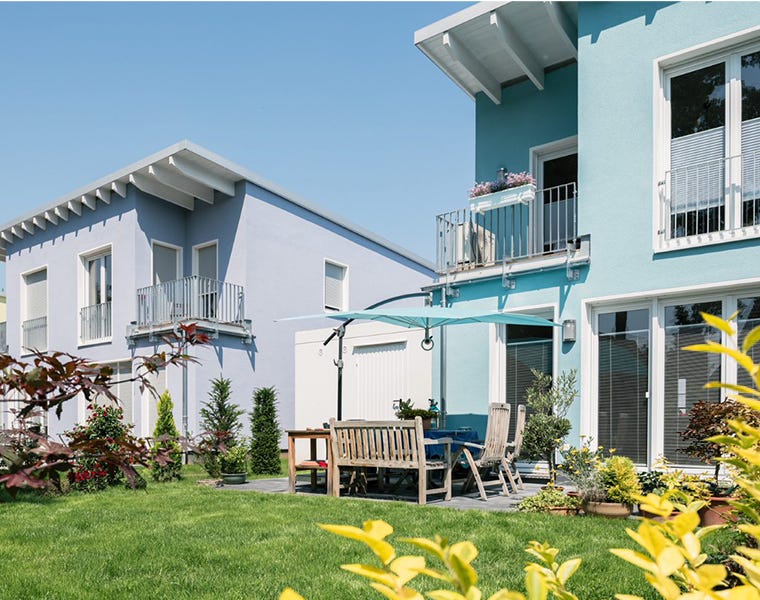 99 Reihen- und Doppelhäuser, die 2019 fertiggestellt wurden, versprechen das Grüne vor der Haustür und die Großstadt in der Nähe. Hier lebt es sich ruhig und entspannt mit gleichzeitig gut ausgebauter Infrastruktur. Die Terrasse, der Garten und das ausgebaute Dachstudio sorgen für maximalen Wohnkomfort.